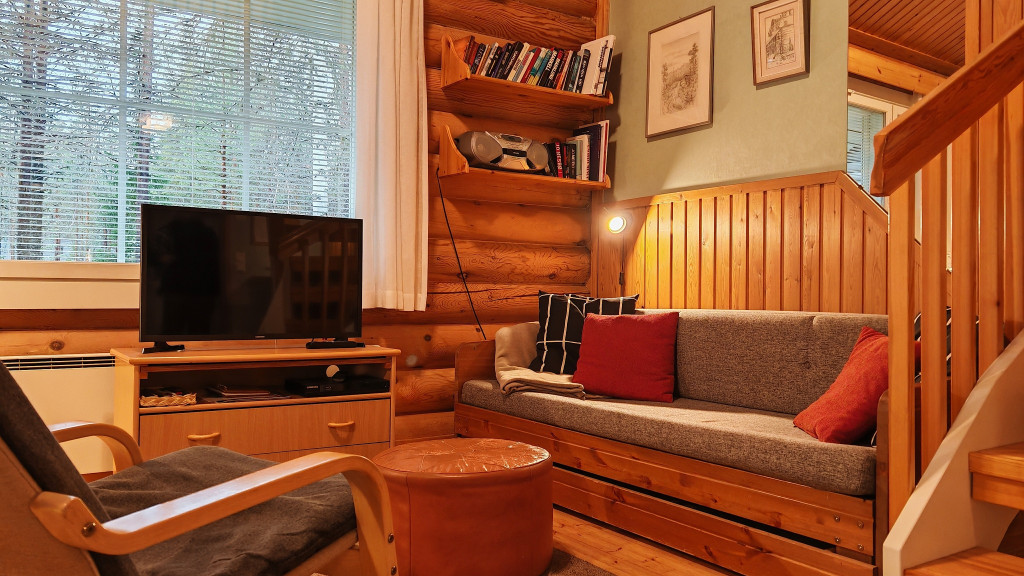Kodikas yksiötyyppinen lomahuoneisto pyöröhirsisessä rivitalossa Nilivaaran alueella. Hyvät ulkoilureitit lähellä, erityisesti liikunnallisten suosiossa. Nukkumatilat parvella.