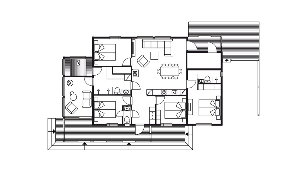 Autokatos, Autopaikka, Kodinhoitohuone, Kuisti, MH alakerta (4), Pesuhuone / WC (1), Sauna, Takkahuone, Terassi, Tupakeittiö, Varasto, WC (2), Suksienhuoltohuone
