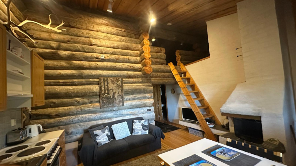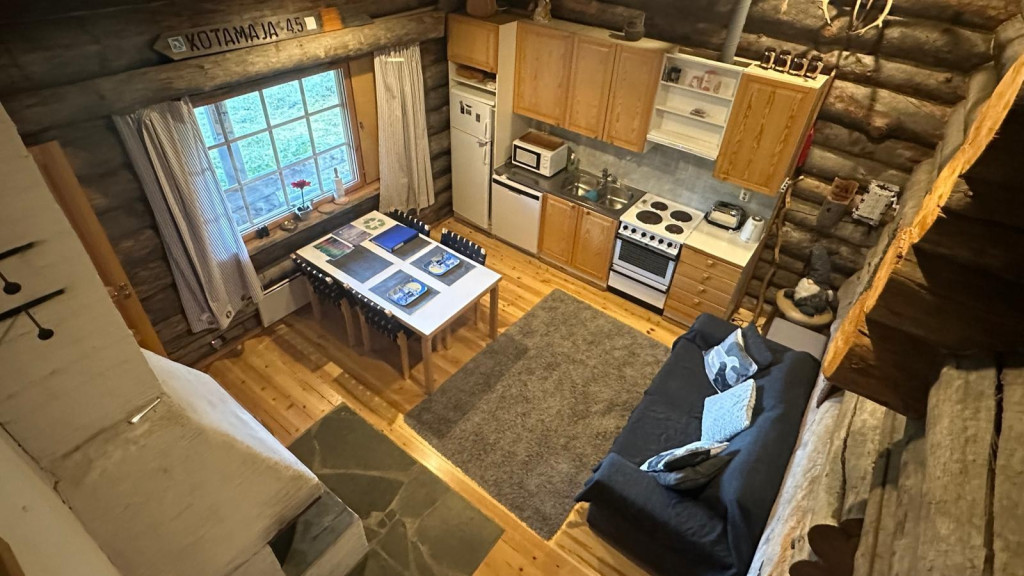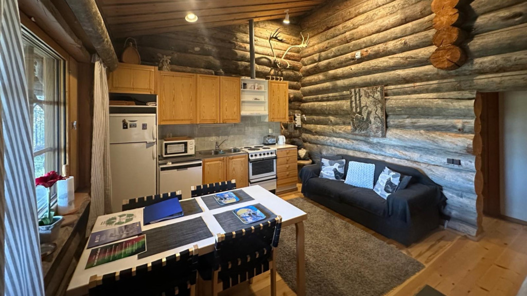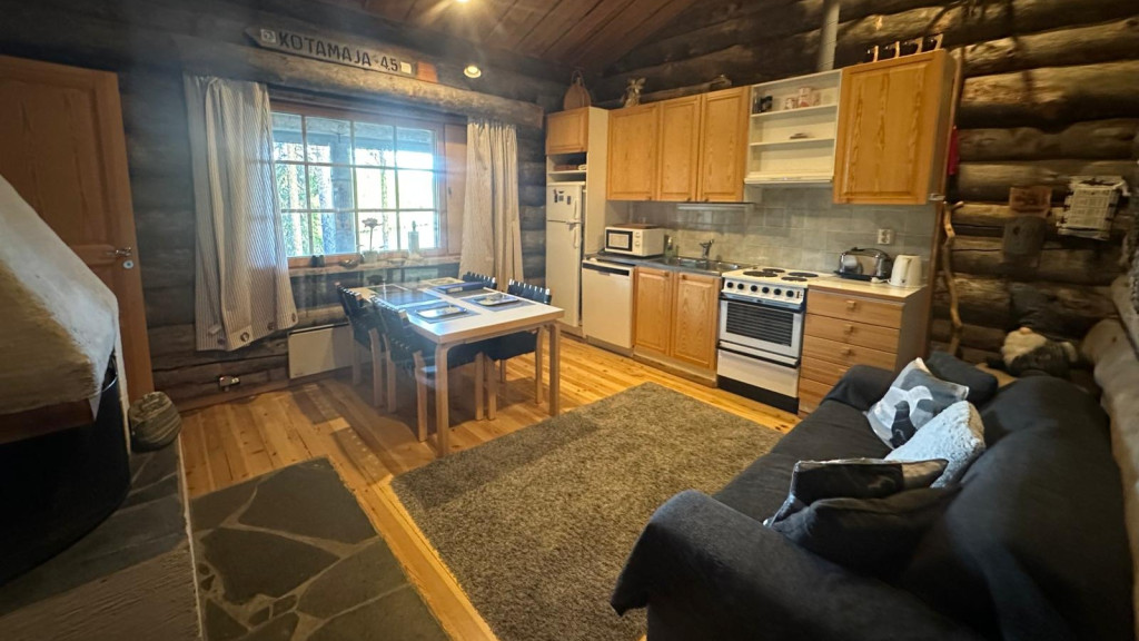 Kuvittele istuvasi illalla mökin tupakeittiössä kun huomaat, että pihalla on komeat revontulet. Menet katsomaan niitä pukuhuoneen ovesta pihalle. Ihailet aikasi, kadotat positiivisesti ajantajun. Tulet takaisin sisään takkatulen loimuun ja nautit olostasi täysin siemauksin ja katselet puhelimestasi upeita revontulikuvia. Voit nauttia kalastamisesta mökin takapihalla, koska Äkäsjoki virtaa vain noin 30 metrin etäisyydellä mökistä: noudatathan kalastussääntöjä. Nopeasti hurautat autolla Äkäslompolon keskustaan (15 km) ostoksille, mutta kuitenkin voit mökillä nauttia rauhasta ja hiljaisuudesta. Äkäsjoki tarjoaa joka päivä erilaista katseltavaa ja voit nähdä joutsenia ja muita upeita lintuja jokimaisemassa. Ota breikki oravapyörästä, lähde nauttimaan kelohonkamökille rauhasta ja hiljaisuudesta. Mökki on paritalo, jossa on myös parvi, mutta se ei ole vuokralaisten käytössä.