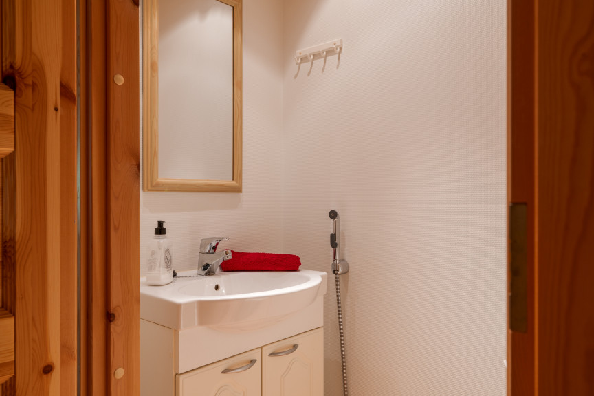 Astianpesukone, Astiasto, Jääkaappi + pakastin, Kahvinkeitin, Koneellinen ilmanvaihto, Leivänpaahdin, Liesi + uuni, Liesituuletin, Mikroaaltouuni, Silitysrauta + lauta, Sohva, Sängyt (4), Takka ja takkapuut, Taulu-TV / digisovitin, Vedenkeitin, Kuivauskaappi, Pesukone